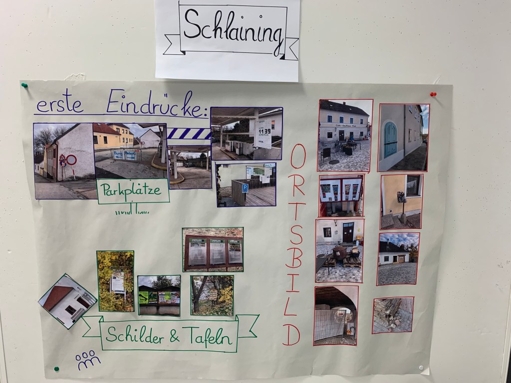 Ideen für Schlaining und den Kurpark Bad Tatzmannsdorf sind gefragt. Wir Schüler*innen sollen aus unserer Sicht gemeinsam mit den Studierenden der FH Joanneum/Bad Gleichenberg daran arbeiten und dabei auch die Methoden des Design Thinking kennenlernen bzw. anwenden lernen. An das „VERSTEHEN“ haben wir uns mit der Gestaltung von Moodboards am Vormittag im Unterricht herangetastet, am Nachmittag folgte eine Videobesprechung mit den Studierenden. Weiter geht es mit Recherchen und der Erstellung von Stärken-Schwächen-Profilen.