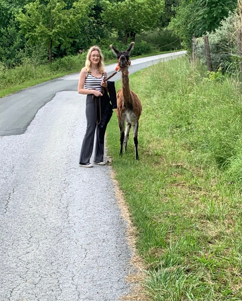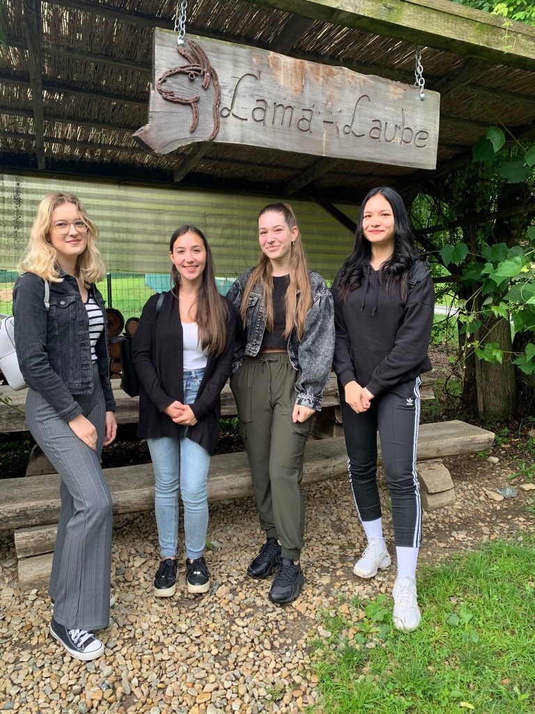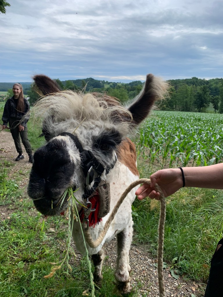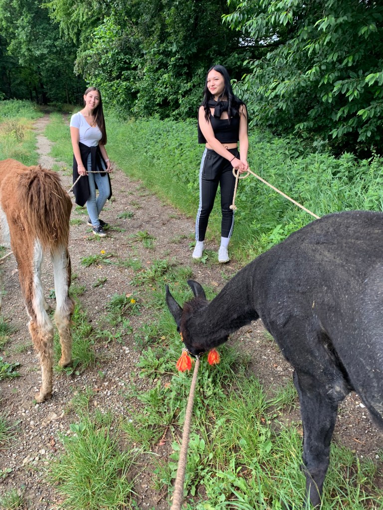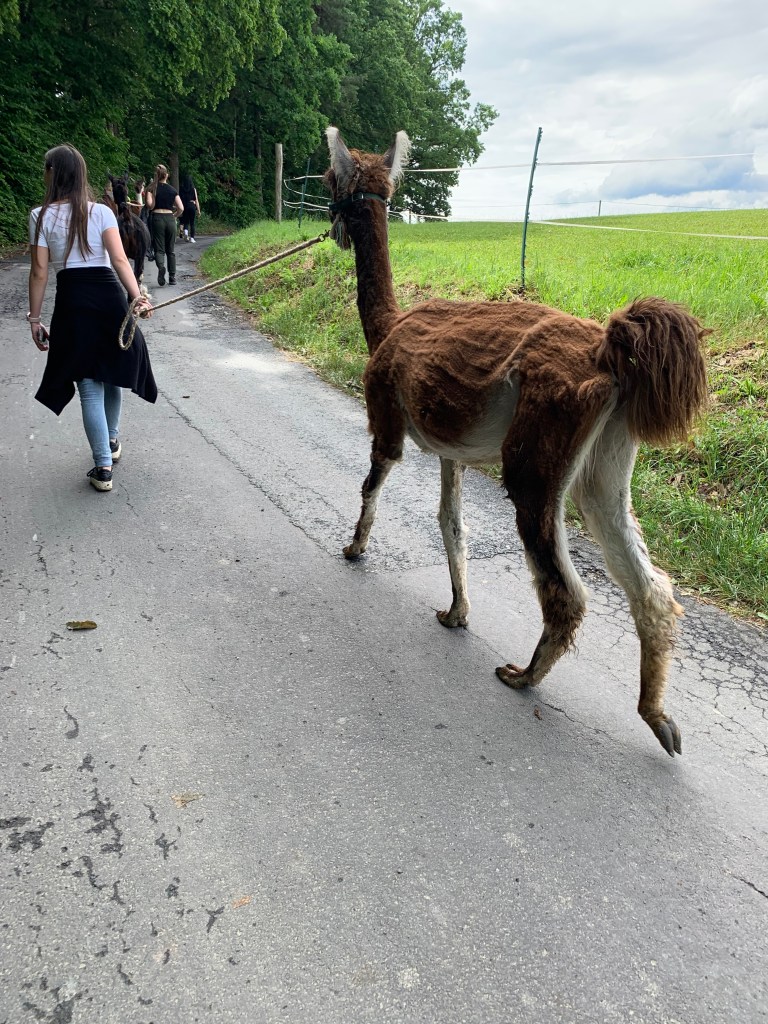Jene Schüler*innen der 4HLT, die noch in der Zeugniswoche in der Schule sind, machten sich auf zur Lama-Wanderung nach Neusiedl bei Güssing. Während ihre Schulkolleg*innen bereits ihr Betriebspraktikum begonnen haben und in Küche und Service wertvolle Erfahrungen sammeln, spazieren Vivien, Nicola, Milena und Gloria mit den Lamas über Stock und Stein. Was für ein nettes touristischen Angebot und was für eine nette Wanderung mit diesen Feinschmeckern!