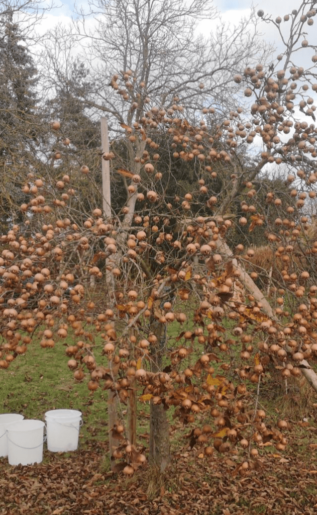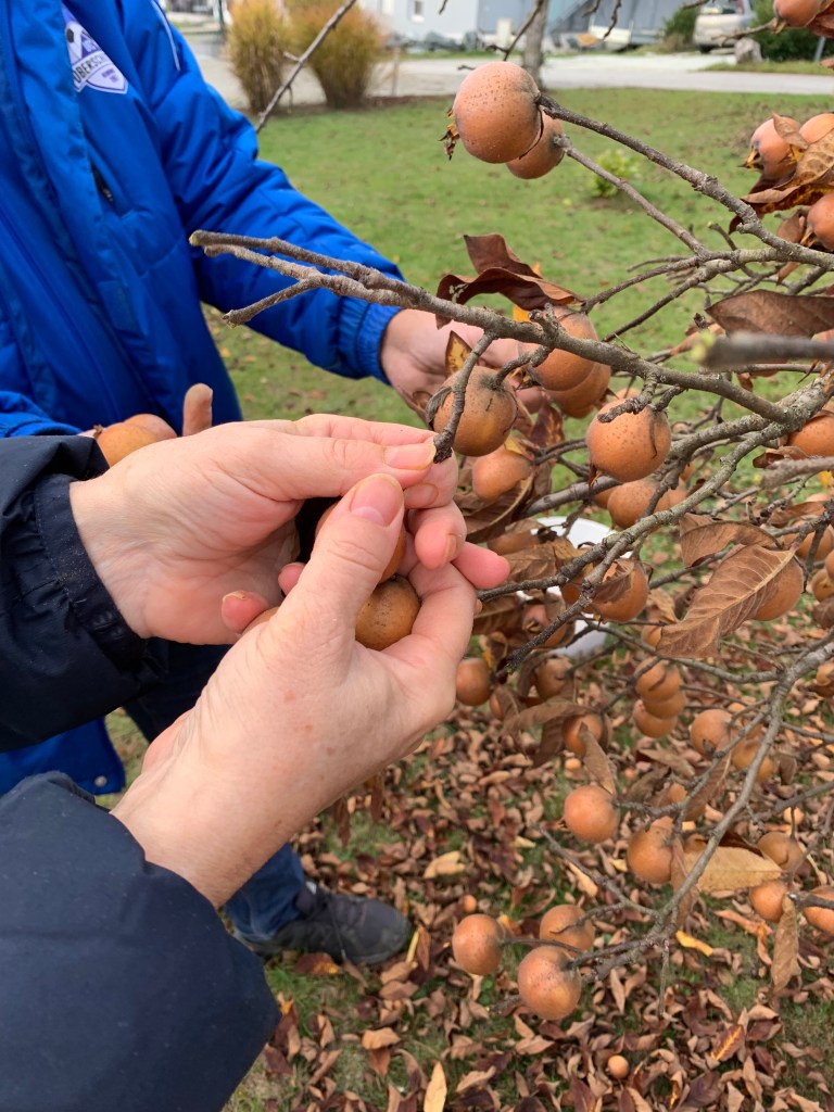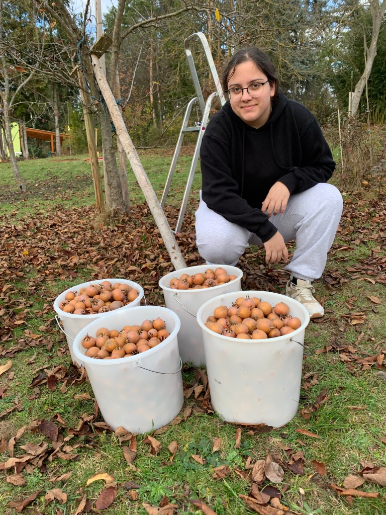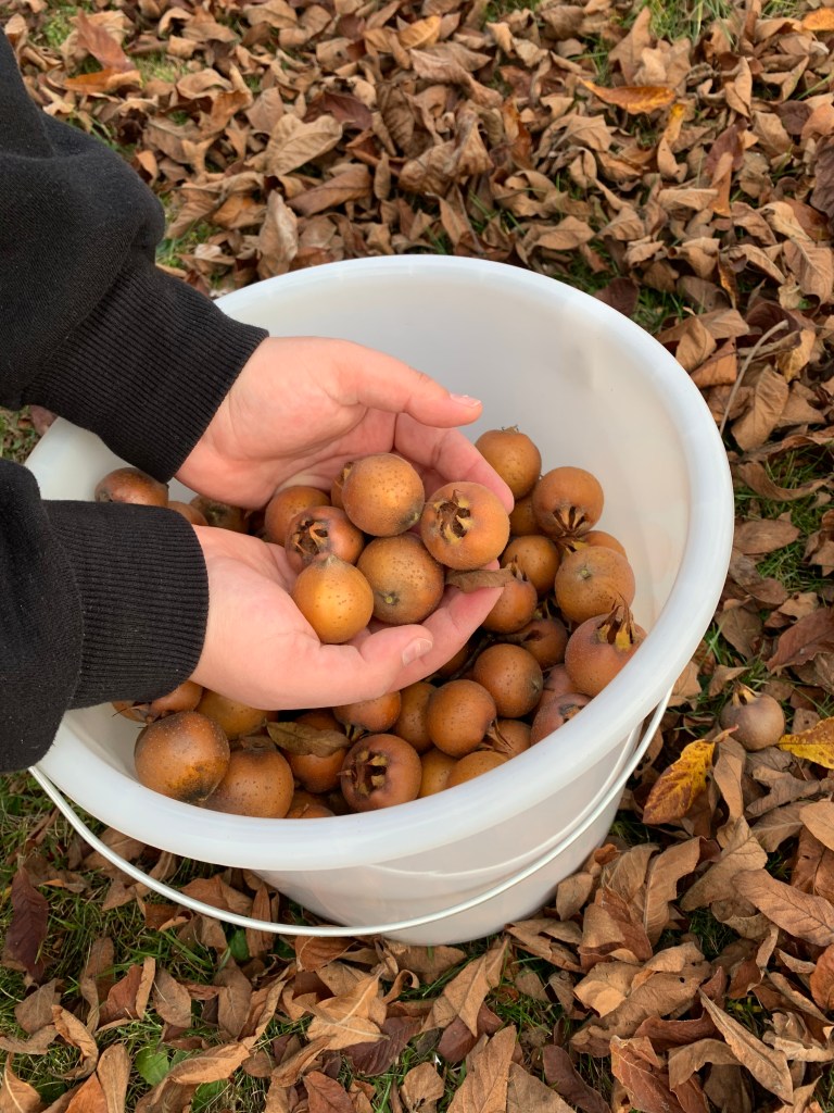 Nach Hagebutten und Schlehen in der Weinidylle konnten nun auch Mispeln für unsere Produktkreationen geerntet werden. Unser Ansprechpartner Thomas Böhm in der Wirtschaftsagentur, mit dem wir gemeinsam das Streuobstwiesenprojekt umsetzen, hat in seinem privaten Garten einen Mispelbaum voller wunderbarer Früchte und wir durften ernten kommen. Florentina aus der 3HLT hat sich darum angenommen und vier Kübel gefüllt. Die Schüler:innen ihrer Klassen werden nun an den Produktideen weiterarbeiten und nächste Woche in der Küche zur Tat schreiten. Bleibt dran, wir berichten!