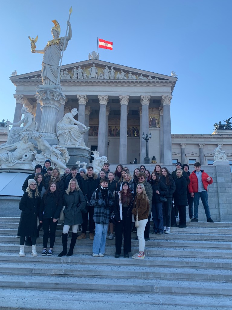 Die Tourismusprofis der 5HLT haben sich für einen Wientag vor den Semsterferien zwei absolute Highlights ausgesucht: Einen Besuch inkl,. Führung im neurenovierten Parlament und eine Komödie inkl. Fan-Foto mit einem Darsteller in den Kammerspielen: Monsieur Pierre geht online.