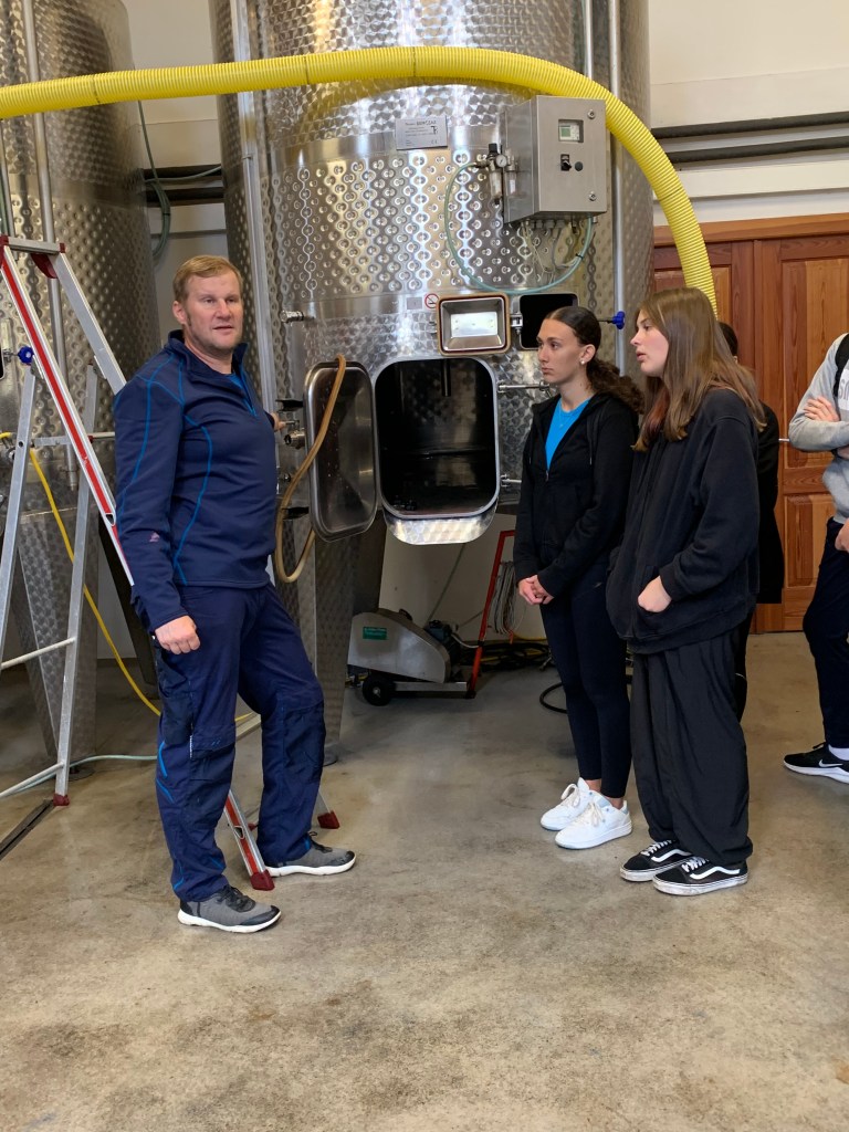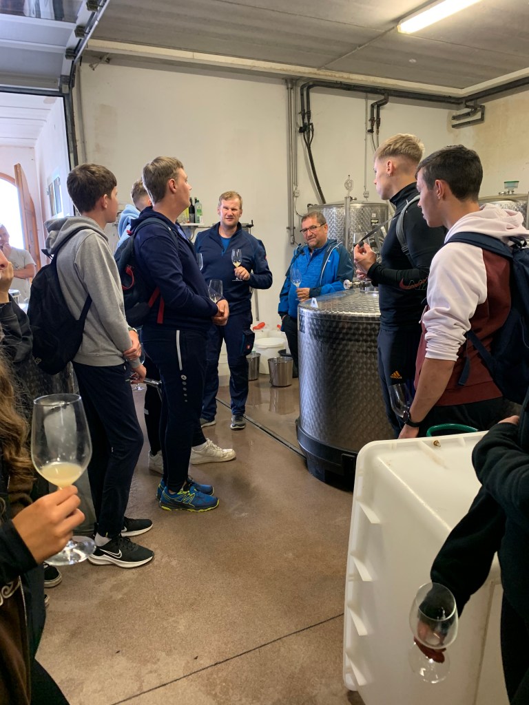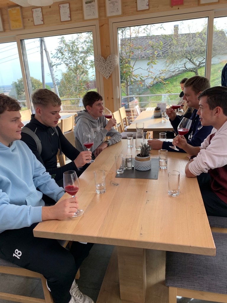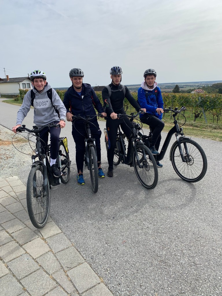 Als Kick off radelten wir mit einem Projektteam der 4HLP von Moschendorf nach Deutsch Schützen zum Weinbau Wachter. Dort erfuhren wir viel Wissenswertes über die Weinlese, die Kellerwirtschaft und die Vermarktungsmöglichkeiten von Wein. Außerdem: Juniorchefin Julia ist Absolventin unserer Tourismusschule.
