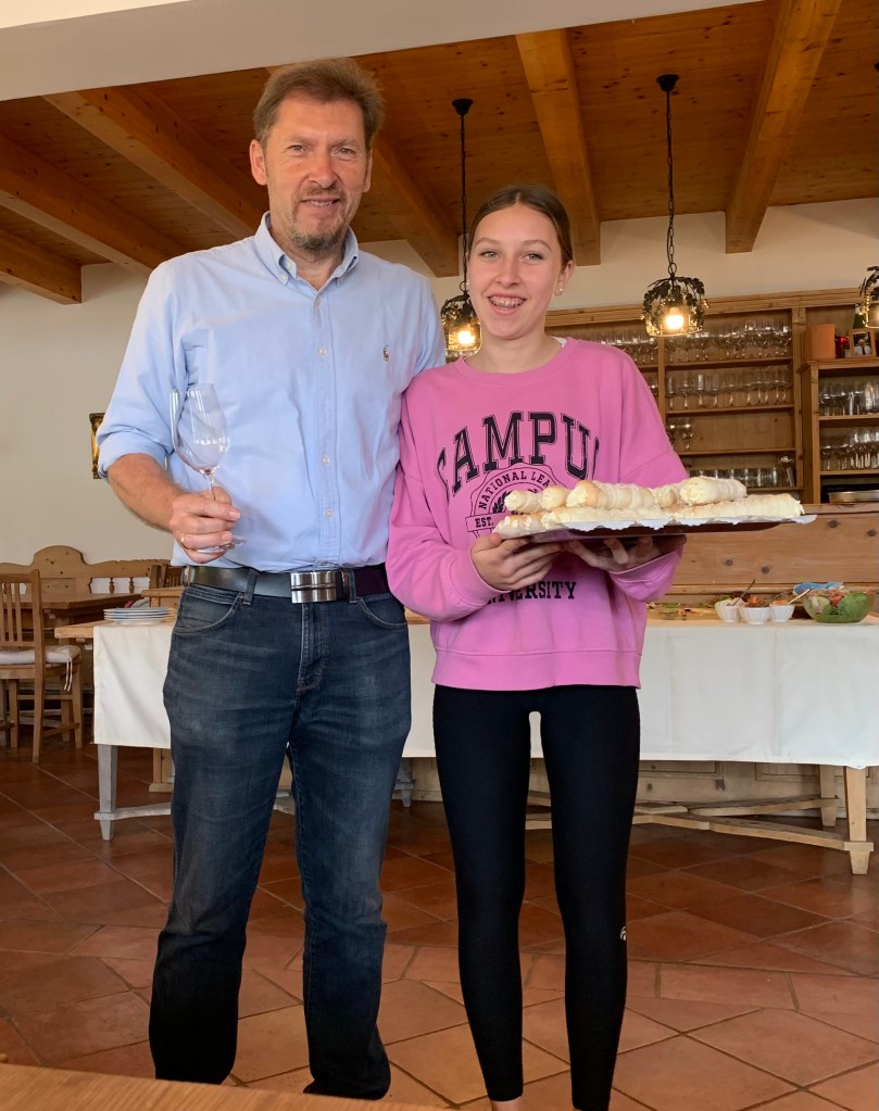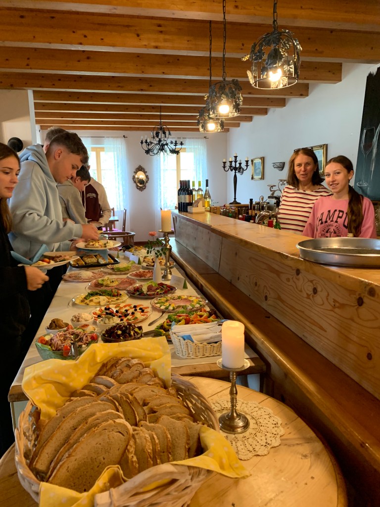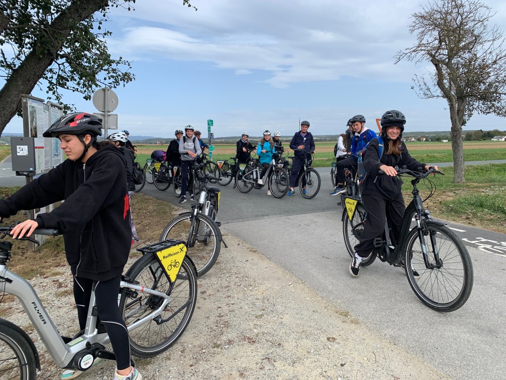 Anschließend radelten wir alle nach Eisenberg zum Buschenschank Wiesler-Schreiner. Danke für die unglaubliche herzliche und köstliche Bewirtung und viele Insidergeschichten zum Thema Buschenschankbetrieb. Sehr nützlich für uns Neulinge! Unsere Schulkollegin Clara aus der 2HLT, die Tochter des Hauses, verwöhnte uns mit ihren frischen Schaumrollen! Wir kommen wieder, Clara!