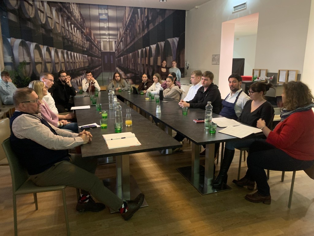 Die Schüler:innen der 3HLT haben die Möglichkeit, drei Tage lang im Oktober 2024 in der Weinidylle Südburgenland einen Buschenschank zu betreiben. Unterstützt werden sie dabei nicht nur von ihren Lehrer:innen an der Tourismusschule, sondern auch von einem Projektteam der HLP, das sich begleitend um den Design-Prozess kümmert. Möglich ist dieses Projekt durch die Unterstützung des Teams des Naturparks Weinidylle. Zwischendurch sind gemeinsame Besprechungen sehr wichtig, um Schnittstellenprobleme zu umgehen. Bleibt dran, es wird sicher ganz toll!