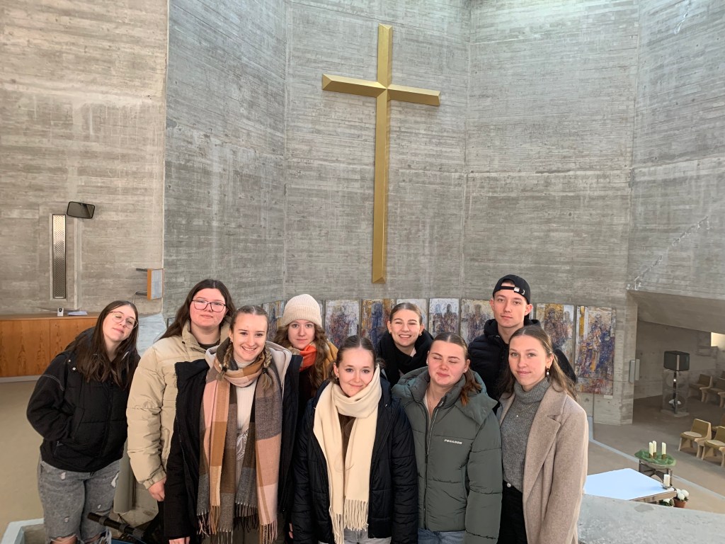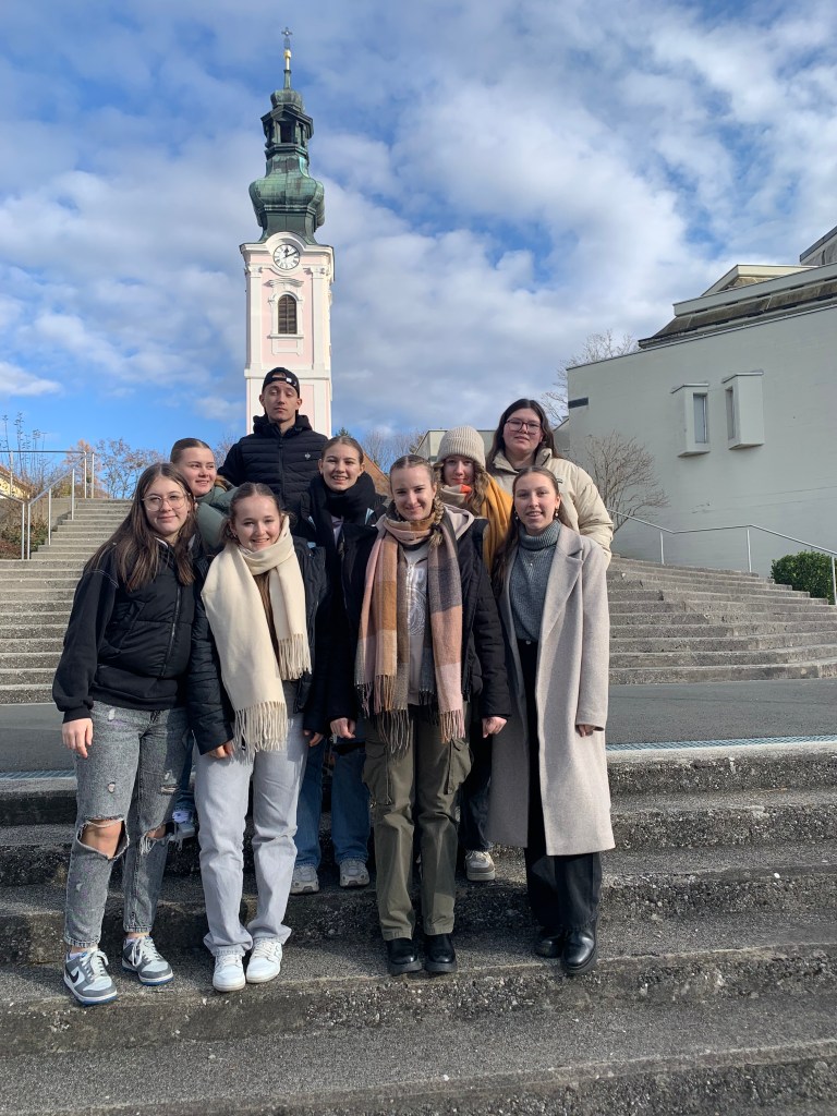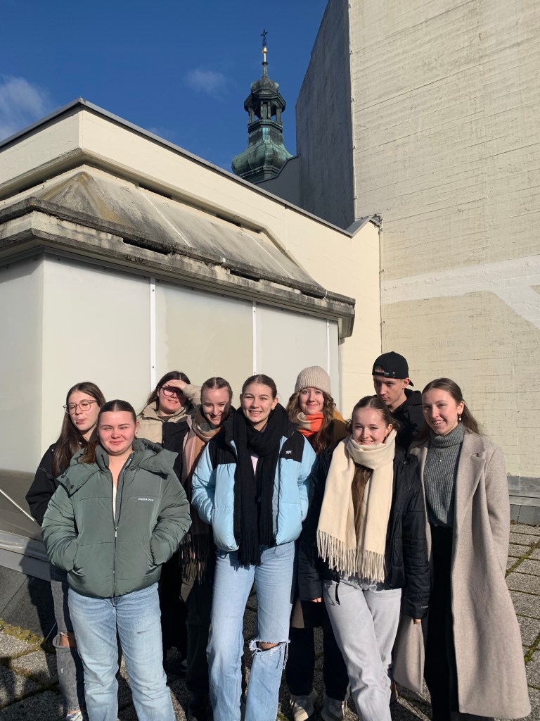 Beeindruckt waren die Schüler:innen auch von den Altarbildern, gestaltet vom Kärtner Künstler Valentin Oman. Der Blick von der Dachterrasse auf die Stadt Oberwart und hinter die Kulissen einer Kirche waren zusätzliche Highlights der Kirchenführung.