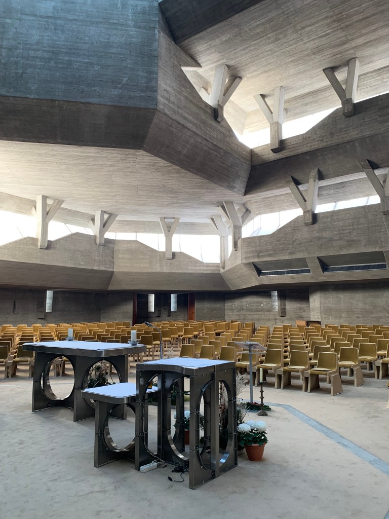 Die Schüler:innen der 3HLT beschäftigen sich im Kunst und Kultur-Unterricht mit Brutalismus und seinen Bauten im Inland und Ausland. Die Osterkirche in Oberwart, geplant von Günther Domenig und Eilfried Huth, ist ein architektonisches Juwel aus dieser Stilepoche.