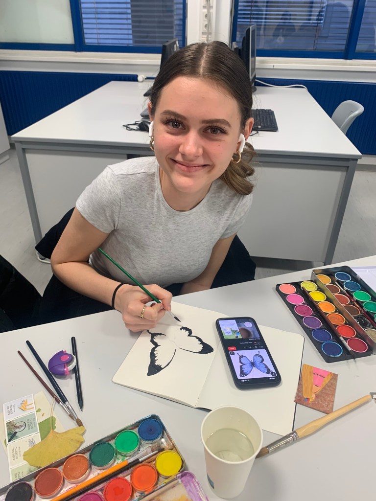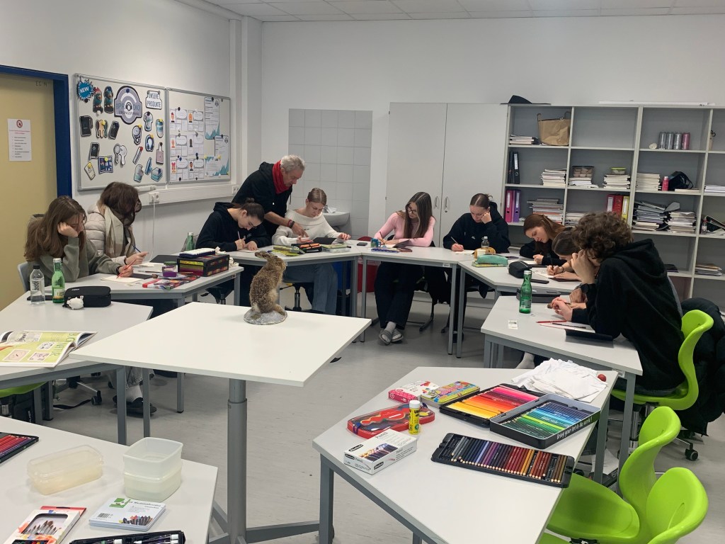 Die Schüler:innen der 3HLT hatten wie schon im Vorjahr die Gelegenheit, mit Willy Puchner ein paar Stunden lang zu arbeiten und sich mit ihm auszutauschen. War es im Vorjahr das Illustrierte Fernweh, das beeindruckte, war es diesmal die Vielfalt der Natur. Es wurde gezeichnet, gemalt und geschrieben, die Zeit verging wie im Flug.